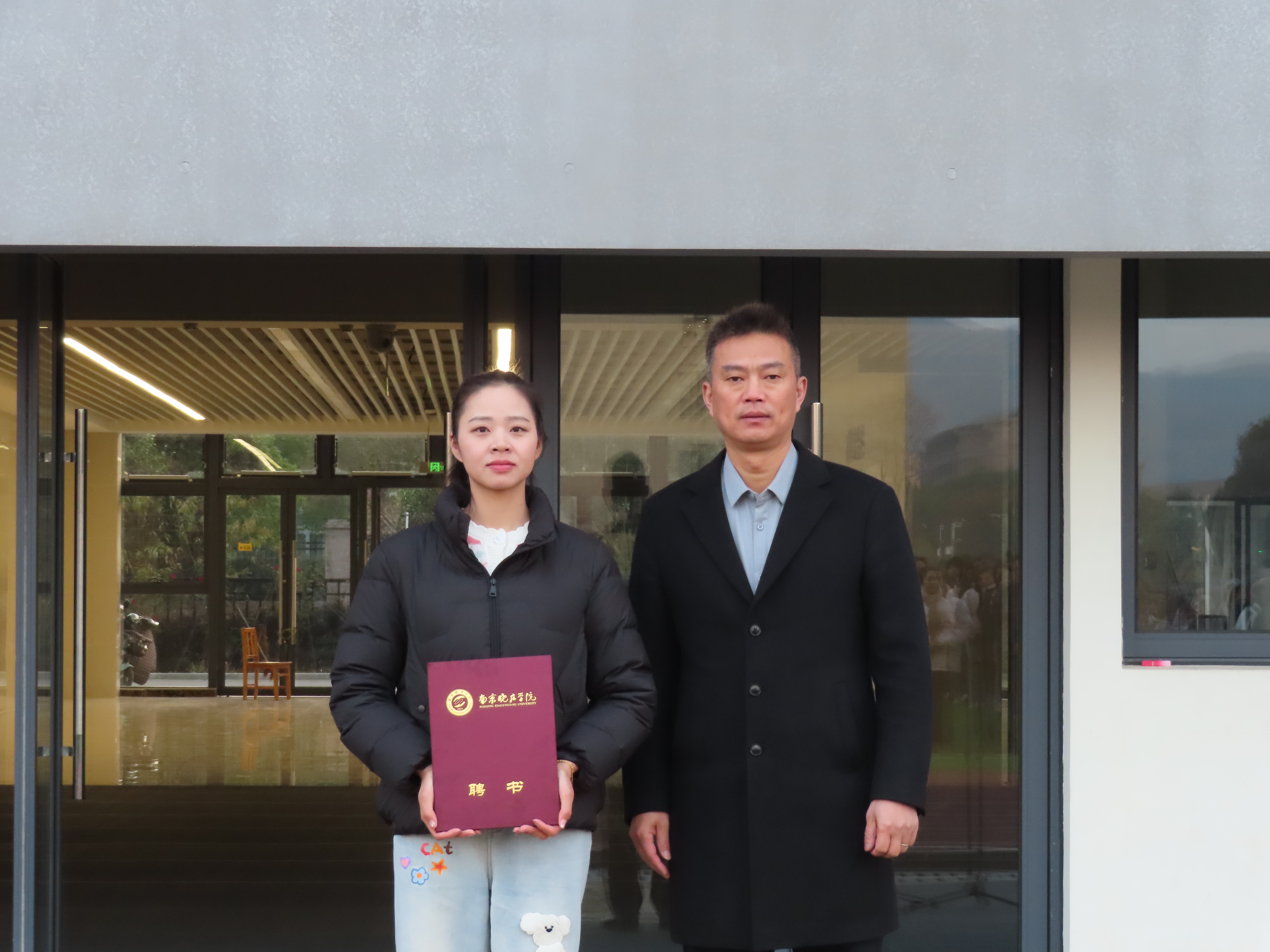 12月8日清晨,我校在方山校区北操场庄严肃穆,师生齐聚于此,举行国家公祭日主题升旗仪式暨国旗下讲话活动。学生工作处相关人员、各二级学院学工负责人、辅导员和学生代表参加活动,仪式由学工处副处长陈华锋主持。在庄严的国歌声中,五星红旗冉冉升起,全体师生肃立行注目礼,共同缅怀历史、致敬英烈。升旗仪式后,学工处处长吴鑫为我校2022届毕业生、现任南京晓庄实验学校美术教师陈雯雯颁发聘书,正式聘请她担任学校国旗护卫队校外指导老师。陈雯雯老师曾服役于中国人民解放军仪仗大队,多次参与重大国事活动礼仪任务,并入选今年“九三阅兵”民兵方阵,走过天安门广场接受检阅。活动中,她以《肩负时代重任 传承民族之魂》为题发表演讲,结合陶行知教育思想与自身从军、从教经历,阐述了对教育本质、历史铭记与时代责任的深刻思考。她呼吁青年学子不忘历史、珍惜和平、奋发向上,将个人理想融入国家发展,以实际行动传承民族精神、担当复兴重任。演讲结束后,陈雯雯老师还应邀对校国旗护卫队进行现场指导,从队形排列、动作规范到精神风貌,细致传授经验,进一步激发了队员们的训练热情与责任意识。此次升旗仪式不仅是一次爱国主义教育的生动实践,也是一次校友反
