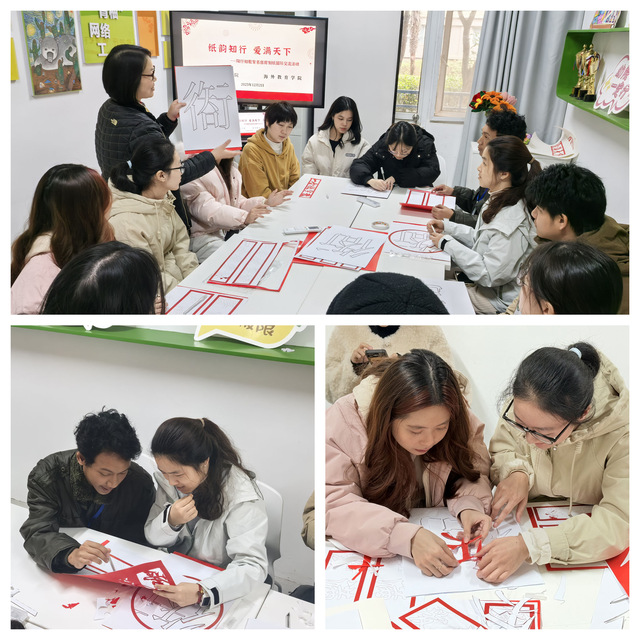 12月2日,海外教育学院与幼儿师范学院在“一站式”学生社区举行“纸韵知行 爱满天下——陶行知教育名言剪刻纸”联合主题党日活动。两院党政负责人、辅导员、指导教师及学生代表齐聚一堂,通过剪刻纸这一传统技艺,共同学习陶行知教育思想,感悟行知精神。活动伊始,海外教育学院负责人为在场师生深入解读了陶行知先生“爱满天下”“教学做合一”的...