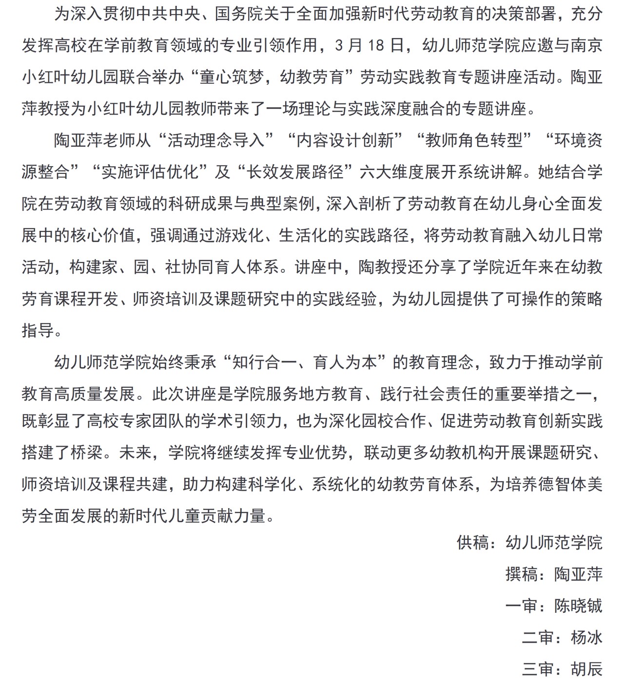 幼儿师范学院助力小红叶幼儿园“幼教劳育”实践创新活动
