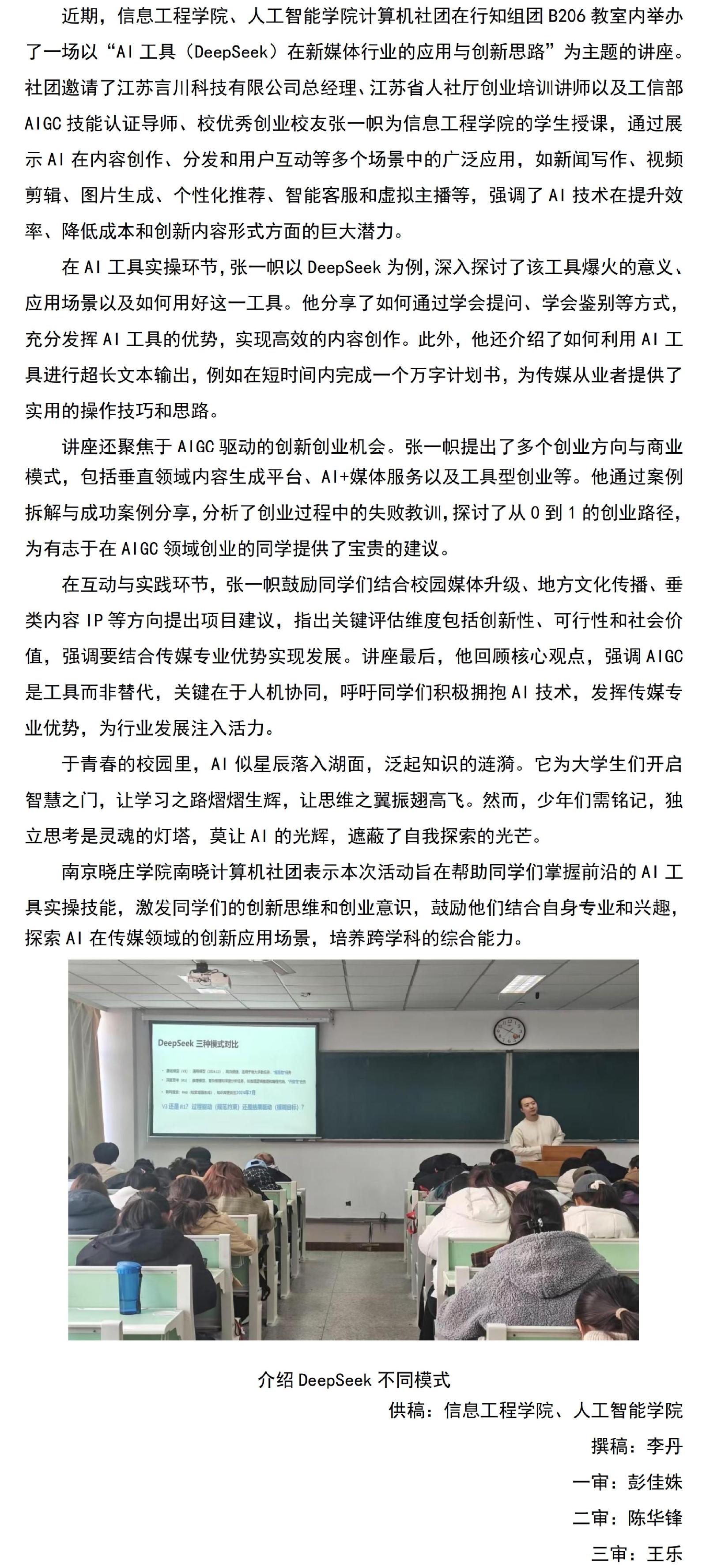 信息工程学院、人工智能学院计算机社举办AI工具应用与创新思路讲座
