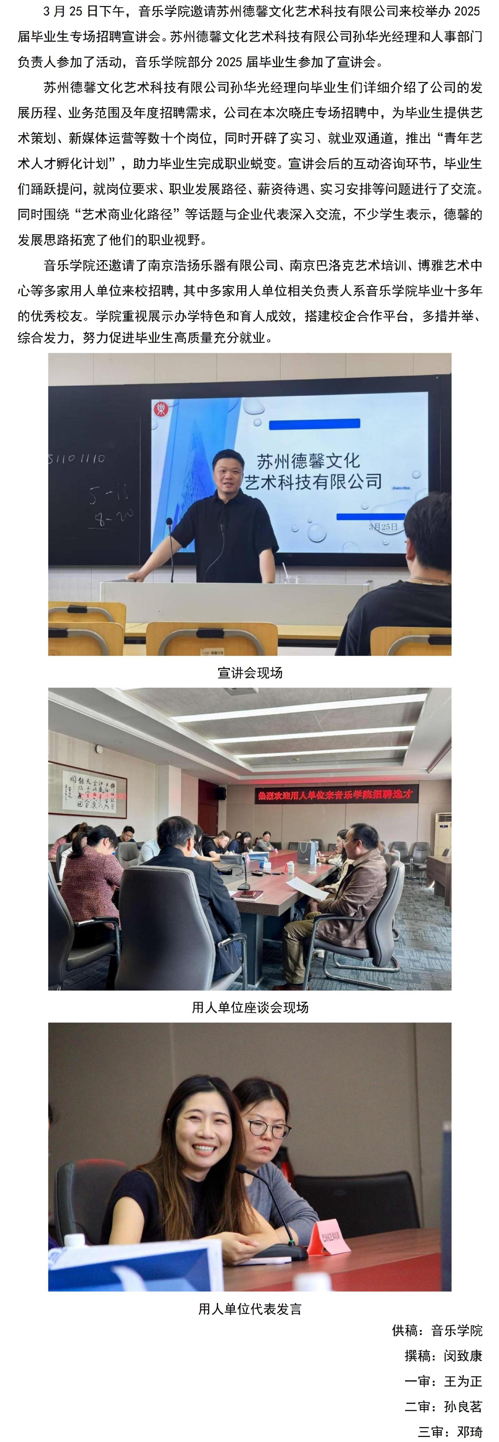 音乐学院举办2025届毕业生专场招聘宣讲会