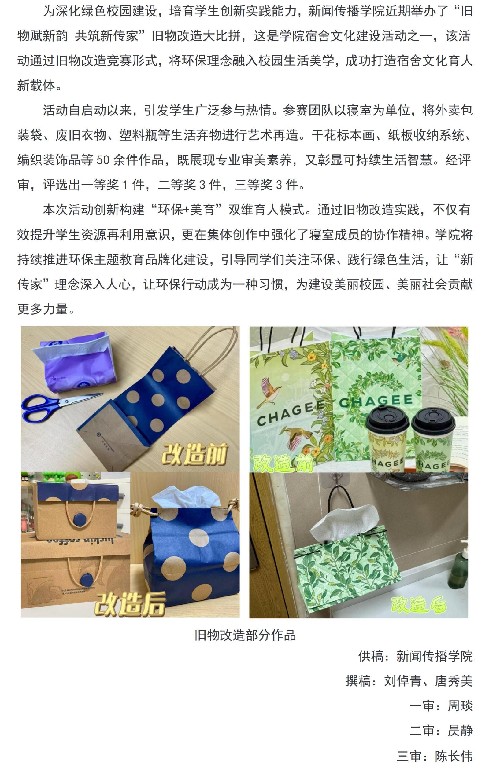 新闻传播学院举办“旧物赋新韵 共筑‘新传家’”宿舍文化建设活动