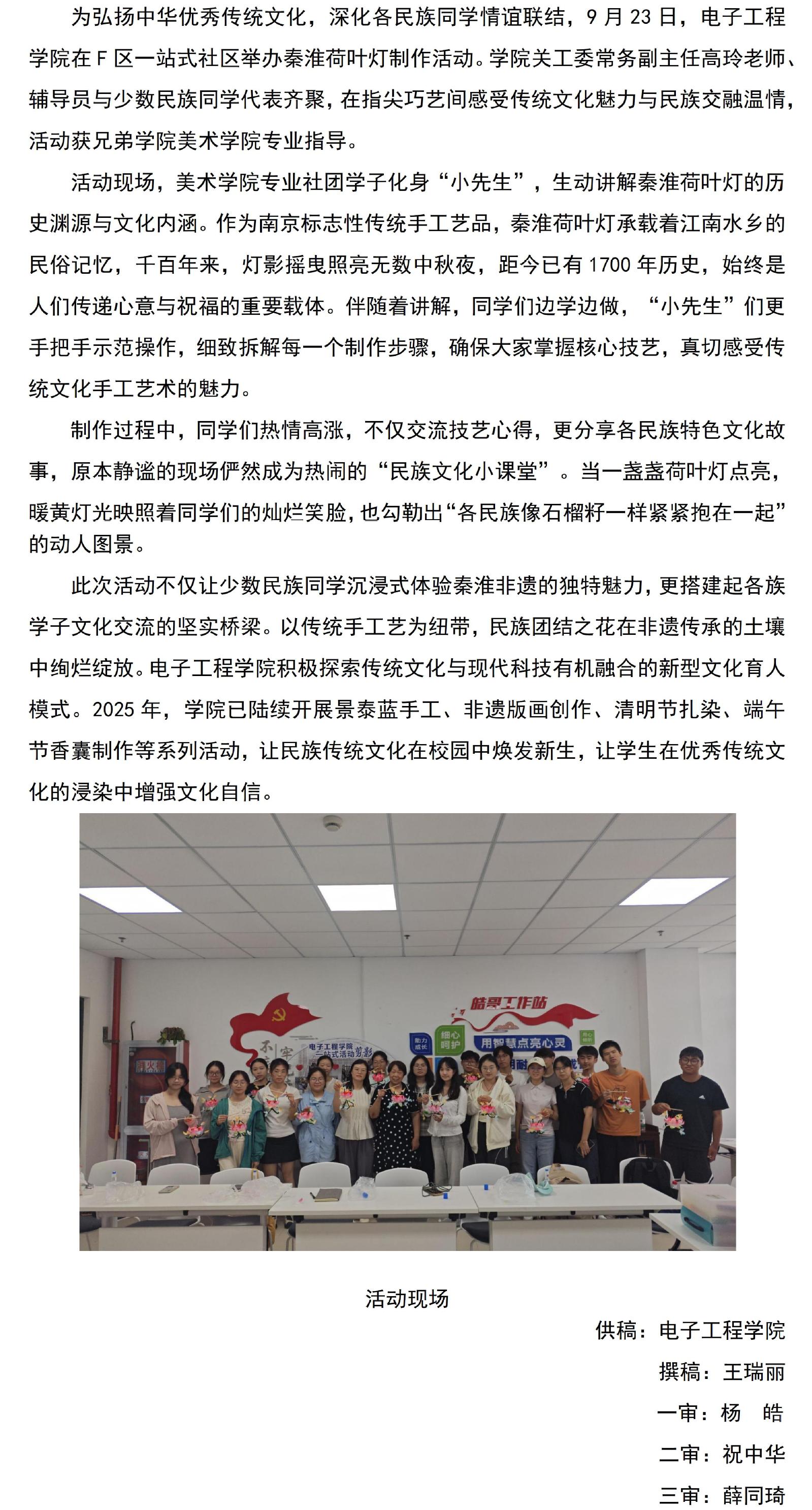 电工院在学生“一站式”社区开展秦淮灯彩手工体验活动