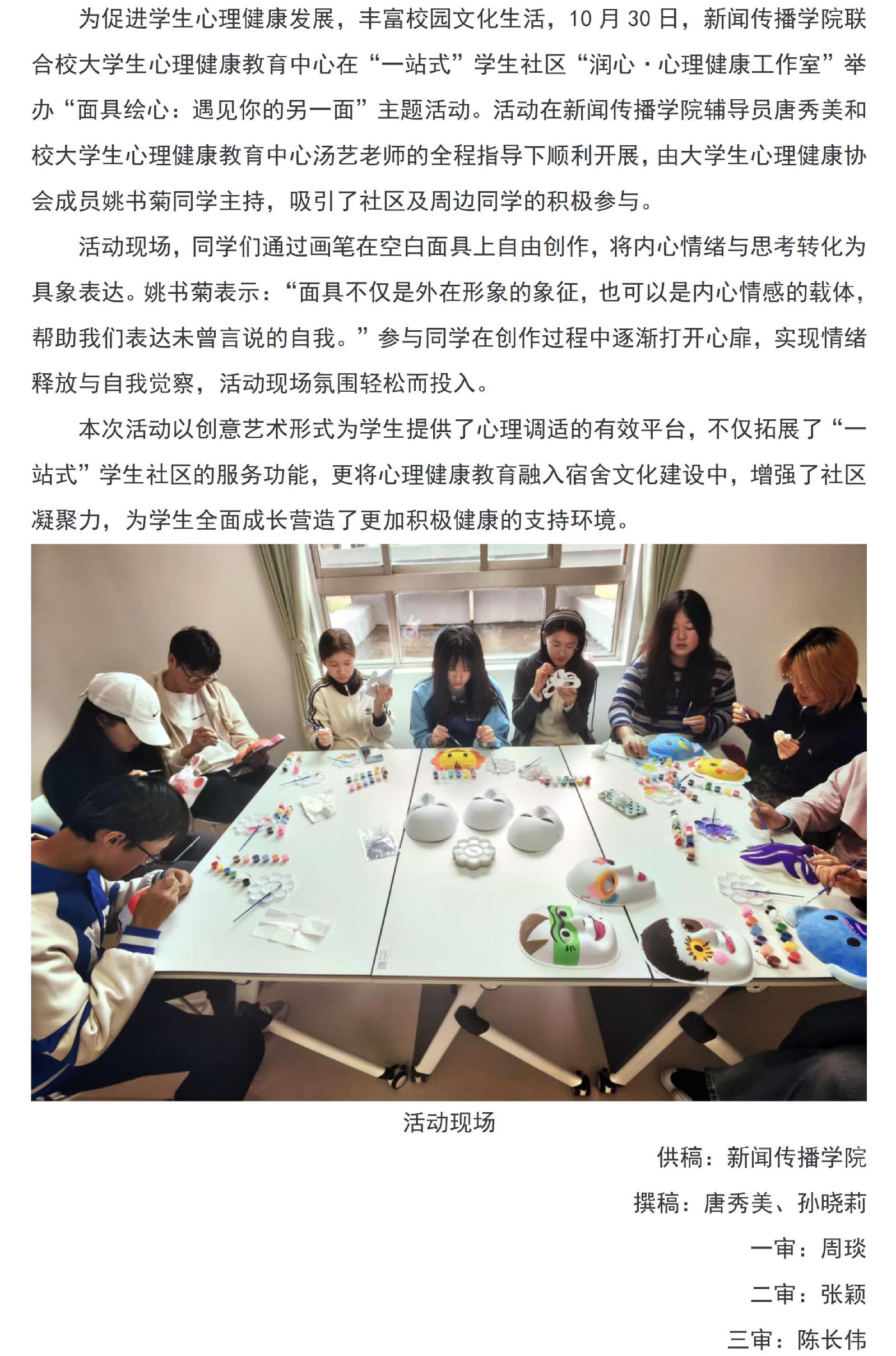 新闻传播学院在“一站式”学生社区举办“面具绘心”创意心理活动