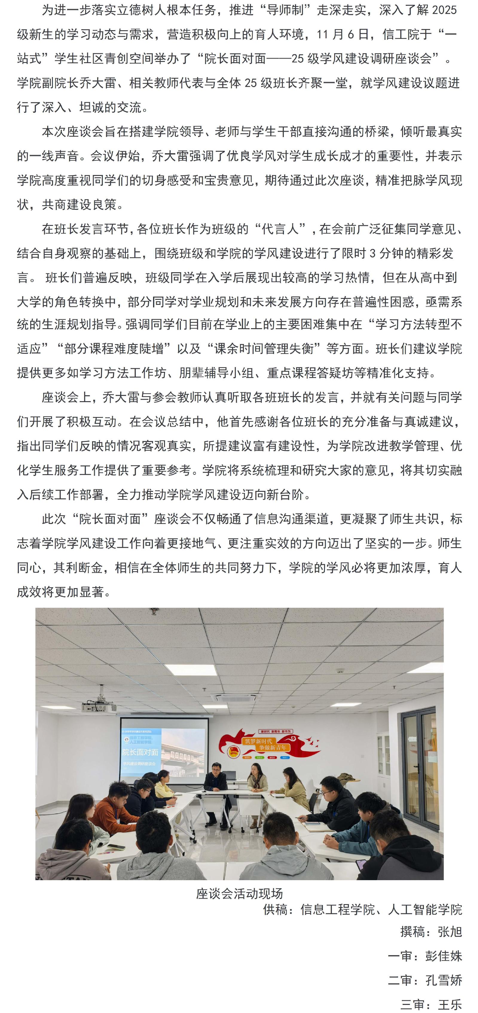 信工院在一站式社区举办“院长面对面”学风建设调研座谈会