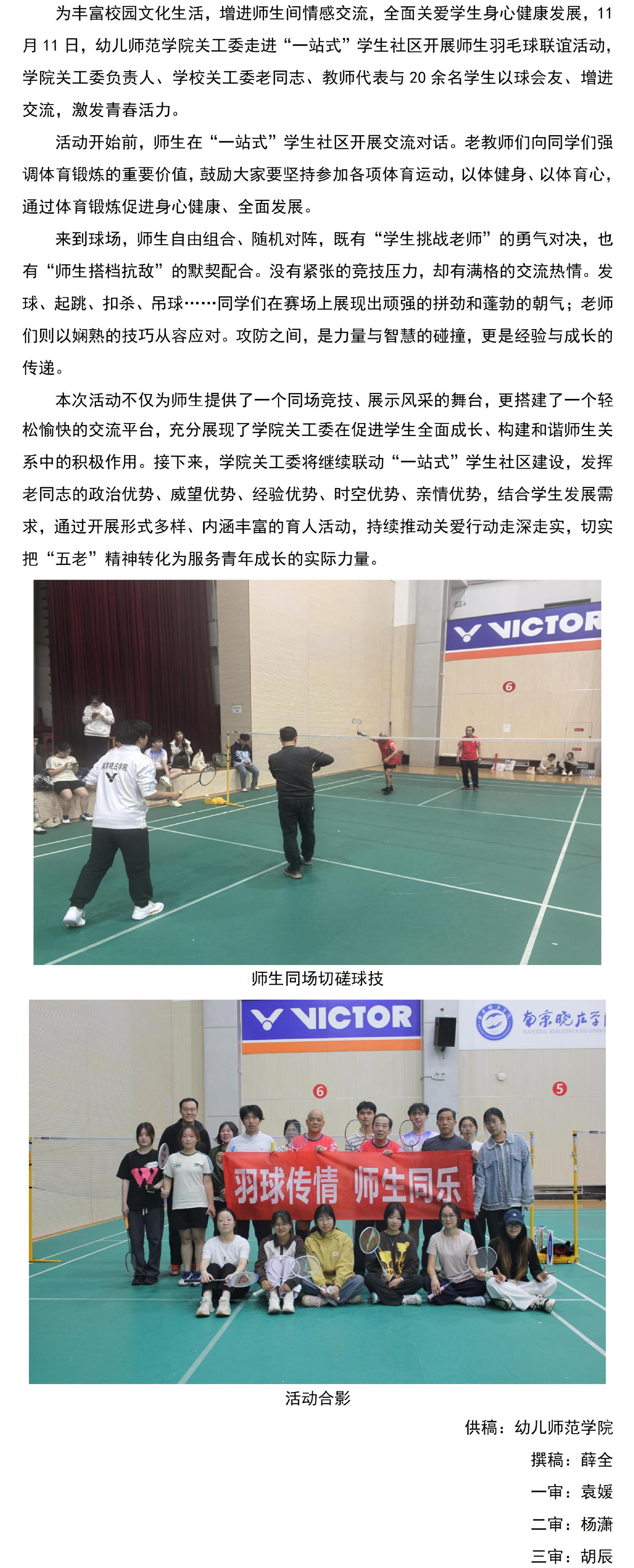 幼儿师范学院关工委走进“一站式”学生社区开展师生羽毛球联谊活动