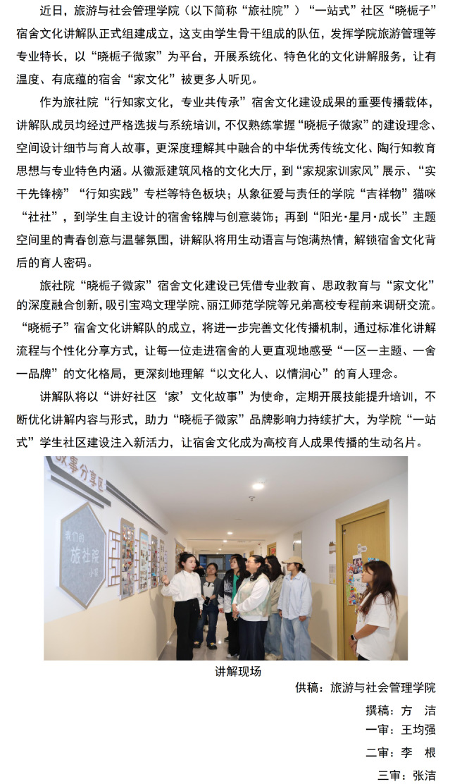 旅社院在“一站式”社区成立“晓栀子”宿舍文化讲解队