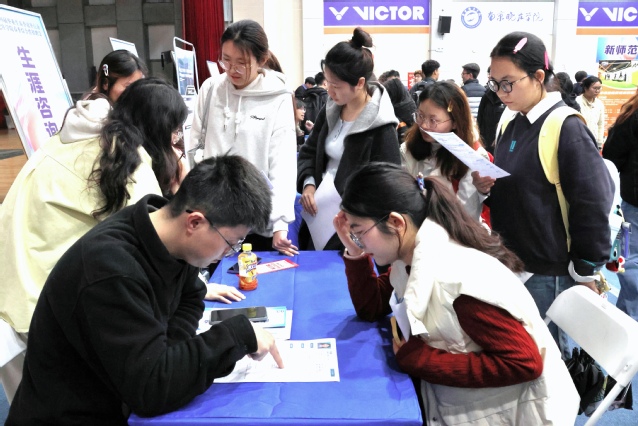 本次招聘会精准聚焦我校办学特色与毕业生专业结构,共邀请200余家优质用人单位携近4000个岗位参会,覆盖教育、文化传媒、信息技术、金融、智能制造、现代服务等多个领域,充分满足我校新师范、新文科、新工科等不同专业毕业生的求职需求。南京市委宣传部联合我校相关二级学院提前谋划供需关系,在招聘会现场设立“南京文化企业招聘专区”,助力文化传媒类人才的双向对接,为毕业生留宁“生根发芽”提供温热土壤;共青团南京市委联合南京市人力资源和社会保障局、各区团委为毕业生带来南京市人才政策2.0及各区引才政策咨询、西部(乡村振兴)计划政策宣传、公职类考试服务咨询、简历指导、12355心理咨询等,助力大学生精准就业。江宁区妇女联合会、南京市女企业家协会专门设立“女企业家招聘专区”,聚焦女大学生就业需求,提供专属岗位与就业支持,以多元化、多层次的岗位供给,实现毕业生求职与企业用人的精准匹配。活动现场人头攒动,毕业生求职热情高涨,参与度较往年显著提升。为提升就业服务质效,学工处着力完善全链条就业指导服务,打造“一站式”就业服务驿站,在会场内设立“简历优化门诊”与“职业规划问询区”,由就业指导老师、行业资深HR现场坐诊,为毕业生提供简历修改、免费打印、AI面试、职业规划、就业政策解读等一对一精准服务。同时,南京市、建邺区、江宁区人社部门及雨花台区人武部在现场开展政策咨询宣传,让毕业生清晰知晓就业扶持举措,安心在宁求职、放心就业。此外,本次招聘会还联合校团委开展“网络直播荐岗”,邀请优质企业HR走进镜头,推介就业岗位,实现“云端投递、线上对接”。